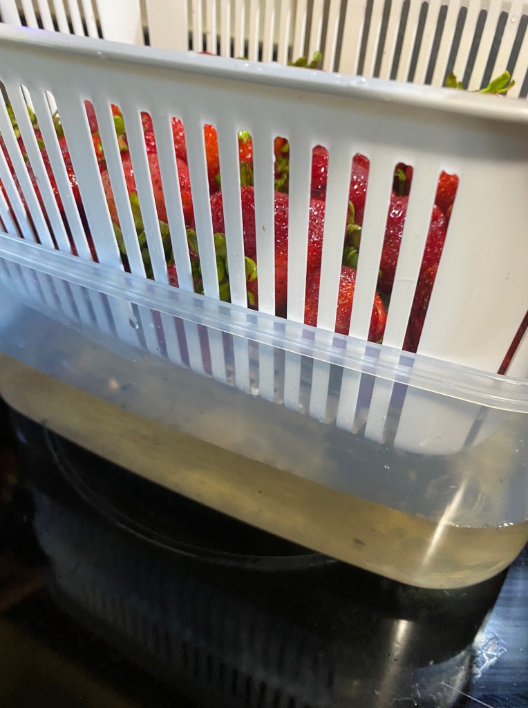 Tip: Pair with a baking soda + salt soak for fruits and berries to remove pesticide residues and tiny pests before storing. Make sure to drain the water, give it another 1-2 fresh water soaks before storing.